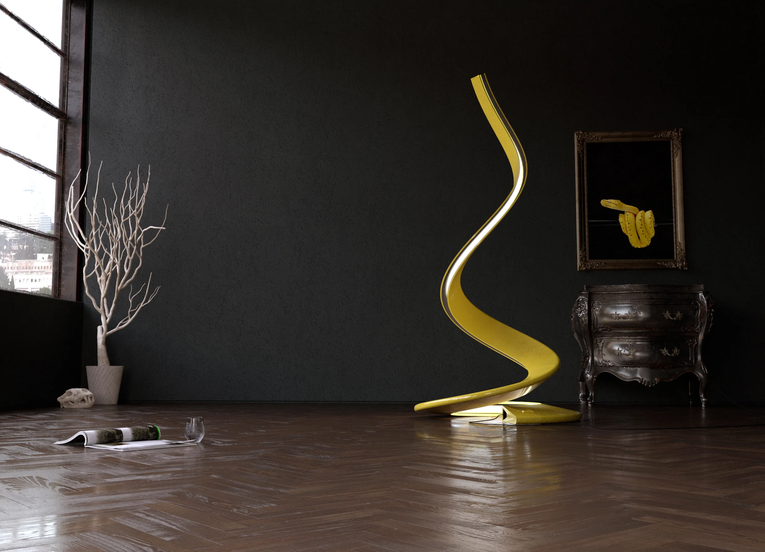 Sexy e scultorea, Python è una spirale di luce che si arrotola restringendosi verso l'alto, più o meno come fa il suo omonimo in natura.